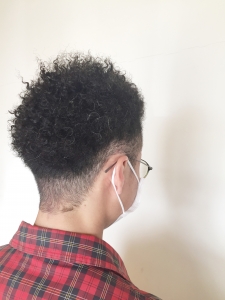 地肌に触れることができないくらい硬くてふわふわしてるアフロを切るのに、ほぼバリカンでカットしました(^^)