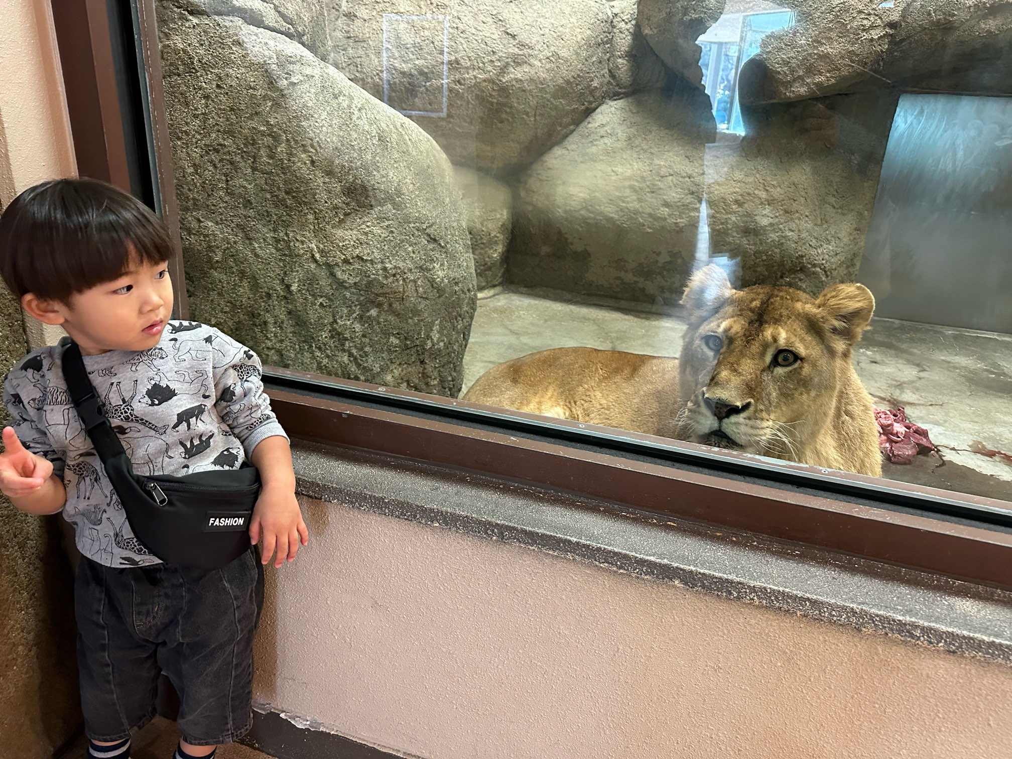 ライオンにビビリながらも写真を撮り、、、