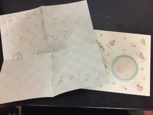 大人になったらこの手紙を書いてくれたことを見せたいと思います!笑